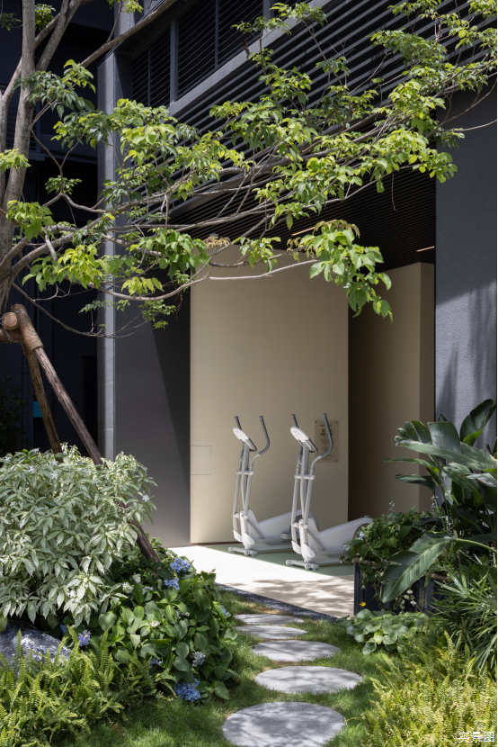 位于1、2单元的健身架空层,提供了有氧区、力量区、划船健身区、椭圆机健身区、弧形跑步机健身区、动感单车健身区、瑜伽及多功能健身区等多个空间,让业主不出小区就能在楼下拥有专业、安全的健身场地和器材,并且可以边运动边欣赏园区绿植造景和城市景观。