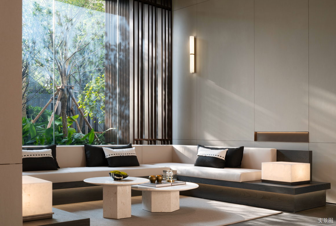 公区大堂则将品质与礼序相融,石材以“山水”为意境,细节的金属线、造景、柔和的灯光与空间融为一体,宽敞而明亮,将东方雅奢到归家体验进一步完美诠释。