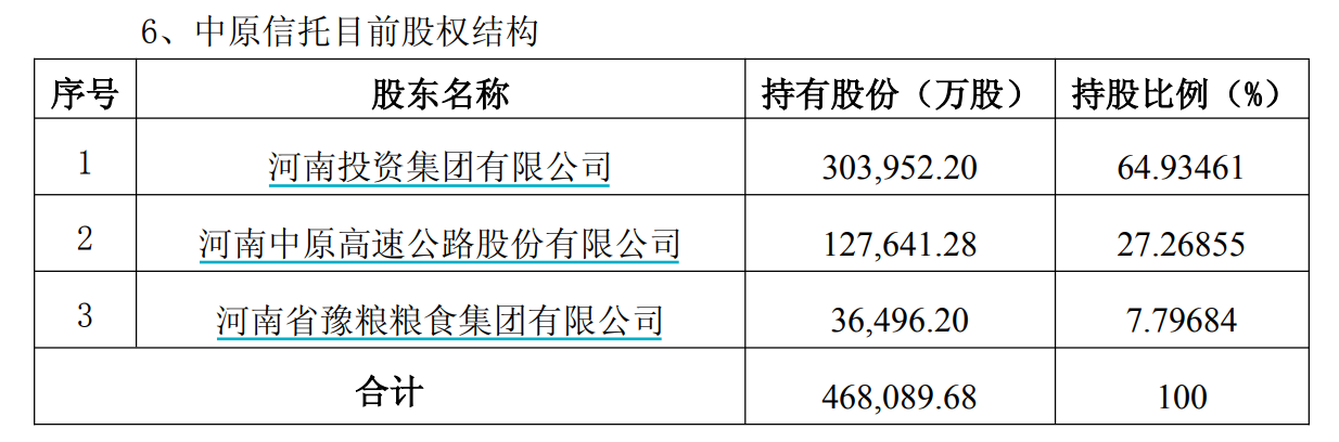 界面新闻此前报道,中原信托自2002年改制以来,已历经六次增资。中原高速在中原信托第二次实施增资扩股时引入,并参与了后期中原信托的第五轮增资扩股。截至第五轮增资完成,中原信托注册资本由36.5亿元增至40亿元,中原高速持有前者股权占比为31.91%。