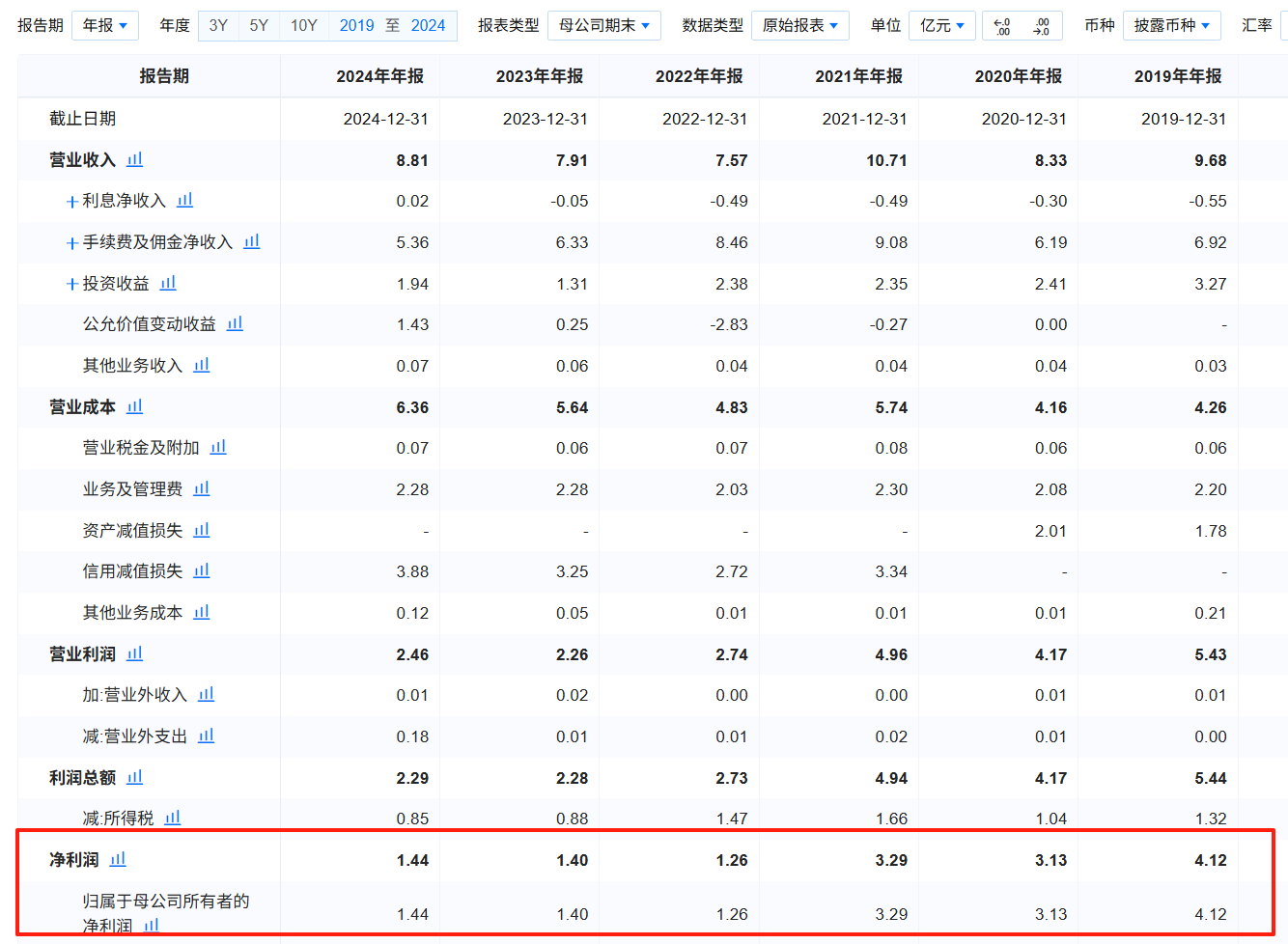 中原信托2024年营收和净利润分别实现8.81亿元和1.44亿元,同比增长11.46%和3.01%;2025年前一个季度实现营收及净利润1.31亿元和0.37亿元;截至2025年一季度末,公司净资产较2024年末微增4024万元。