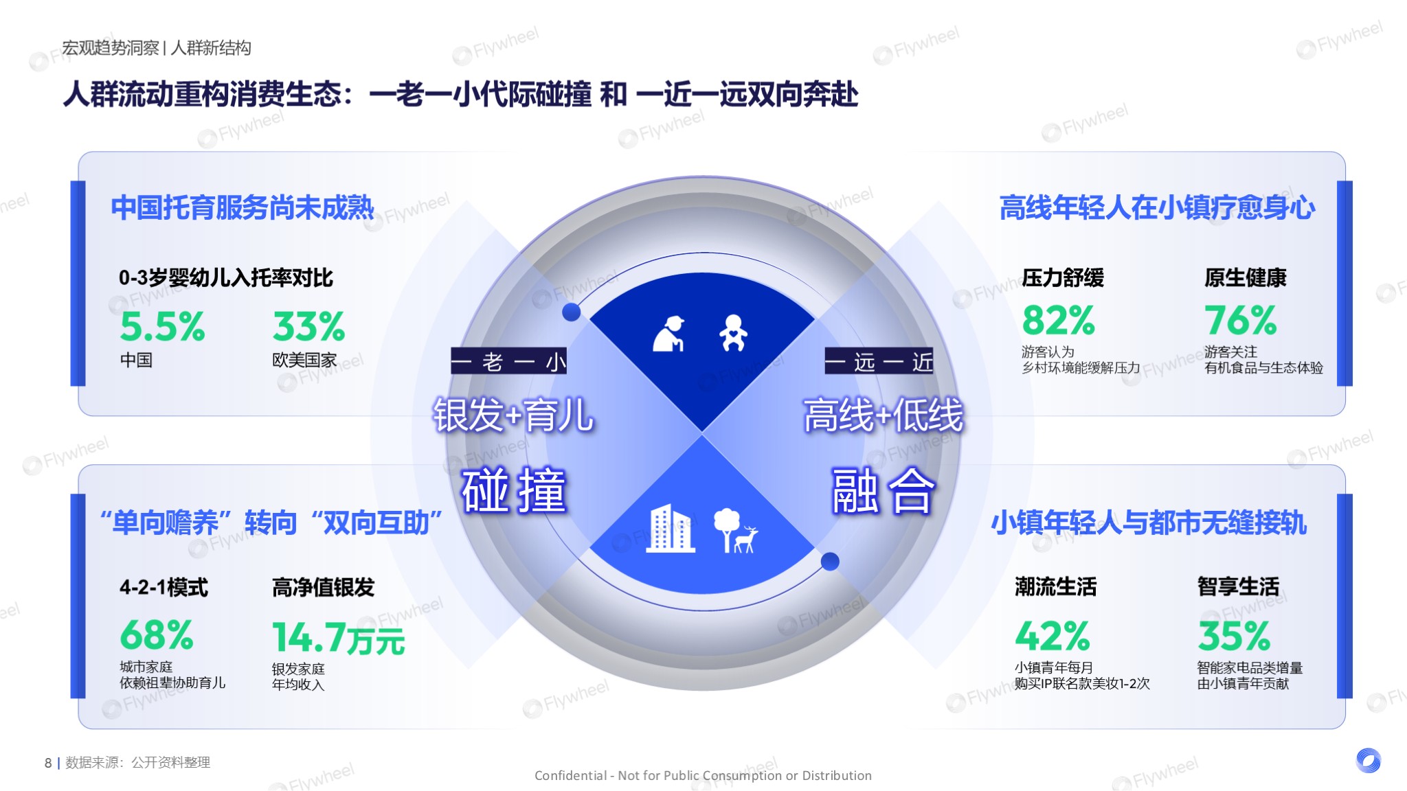 在城市结构上,高线与低线城市消费特征正加速互融。一方面,常居一线城市的职场人群希望在城镇获得身心疗愈,以宁静环境滋养健康;另一方面,小镇青年积极拥抱大都市的生活潮流,其消费能力与产品需求正与都市无缝接轨。