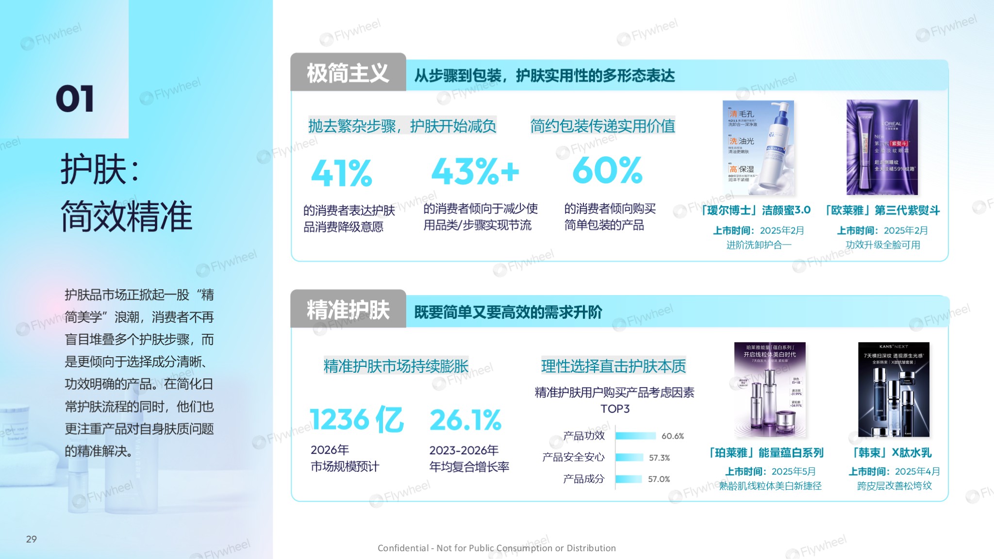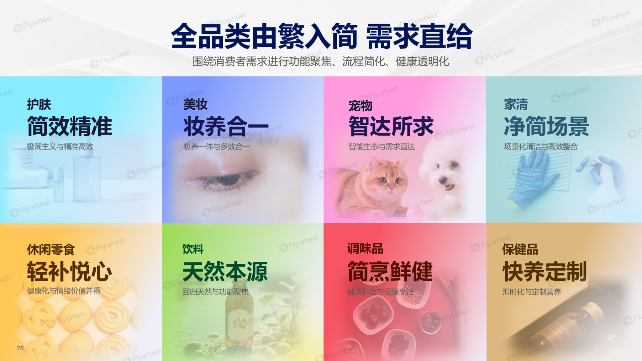 深入具体品类观察,Flywheel飞未发现,品牌正紧密围绕消费者“功能聚焦、流程简化、健康透明”的核心诉求,驱动产品创新与消费场景重构。各品类的变革路径清晰地体现了“去繁就简”的精髓,通过简化选择、优化体验、强化价值,回归满足用户真实、本质需求的消费本真: