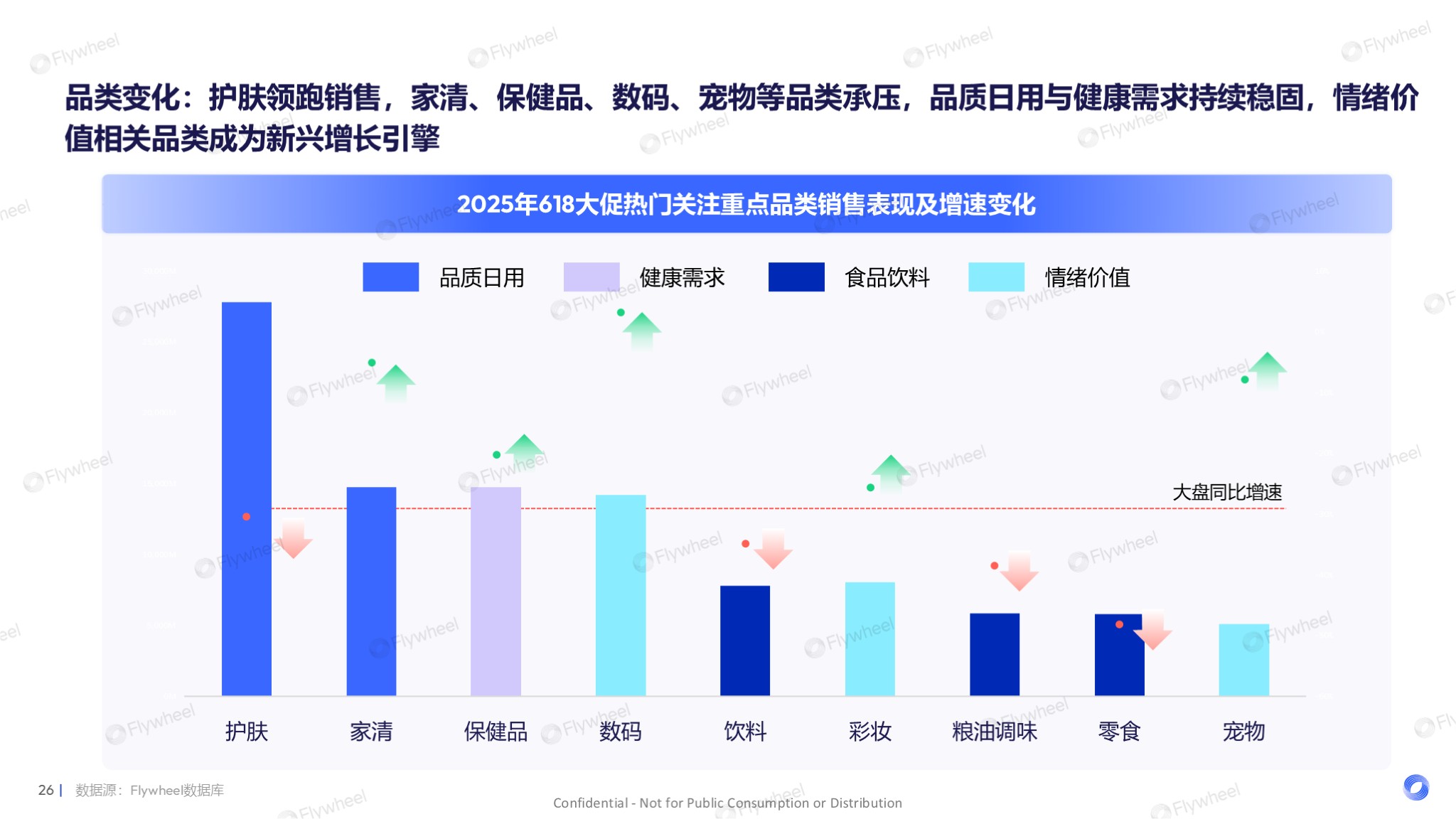 消费者对基础品质与健康刚需的持续坚守:护肤、家清、保健品等满足日常生活保障与健康管理的核心品类,不仅稳居销售头部,更展现出坚实的增长基础。与此同时,为情绪价值与生活悦己买单的需求正成为强劲的新增长引擎,数码、彩妆、宠物等相关品类增速显著领跑大盘,其爆发性增长潜力已然凸显。