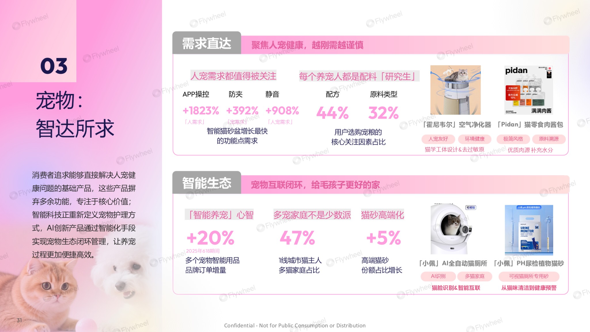宠物品类追求「智达所求」——构建智能生态,精准识别并直达宠物核心需求,简化养宠流程。