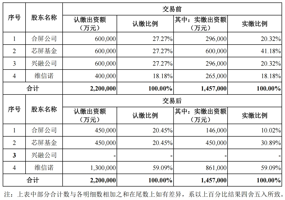 增资完成后,兴融公司、芯屏基金、合屏公司在合肥维信诺的持股比例均为27.27%,维信诺持股比例为18.18%。