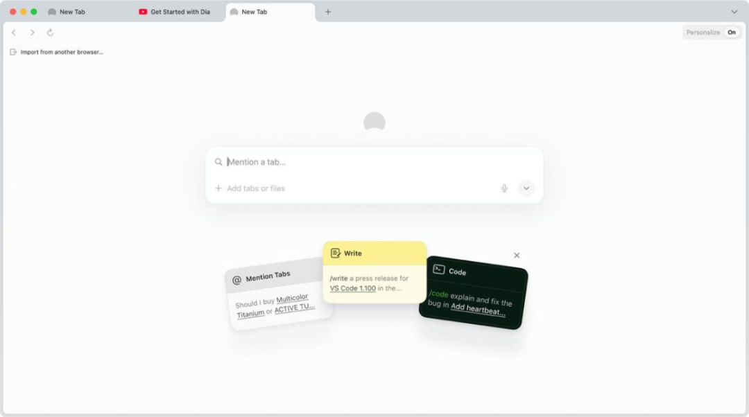 在AI原生浏览器产品中,Dia会让我觉得更像是在使用是一个浏览器,操作更为简便流畅。在它的搜索框中填入内容后,用户可以自主选择搜索打开网页或是开启聊天对话。在已经打开的页面中,用户也可以随时开启AI对话,对一个或多个页面进行总结提问,其工作流是先满足信息获取需要,然后才进一步过渡到写文章或代码编写。