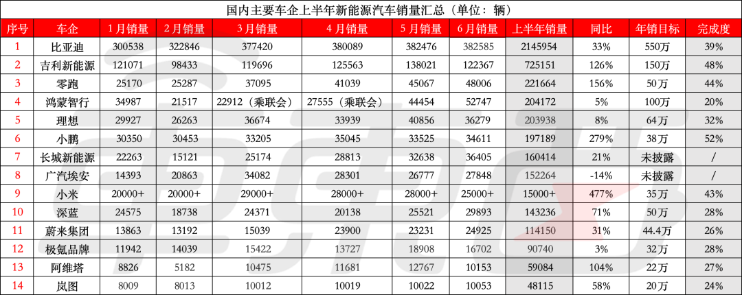 车东西7月1日消息,就在今天,14家车企交出6月新能源汽车销量成绩单。