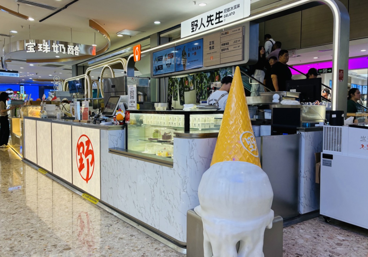 野人先生几乎占据了大部分购物中心的B1、1层,或者餐饮聚集的3-4层等位置。在商场休闲餐饮清一色咖啡、茶饮和烘焙之中,冰淇淋也能够带来差异化,从而吸引客流。