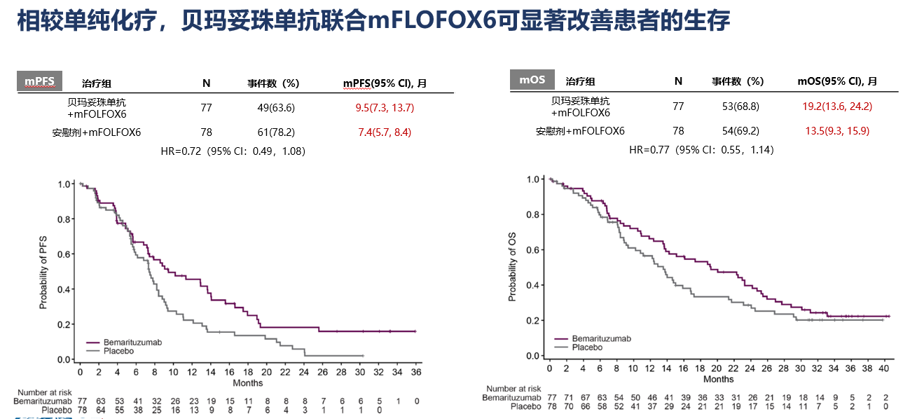 与对照组安慰剂联合化疗相比,贝玛妥珠单抗联合化疗在总生存期(OS)方面显示出具有显著统计学意义和临床意义的改善。这也是全球首个且目前唯一显示OS获益的FGFR2b抑制剂。