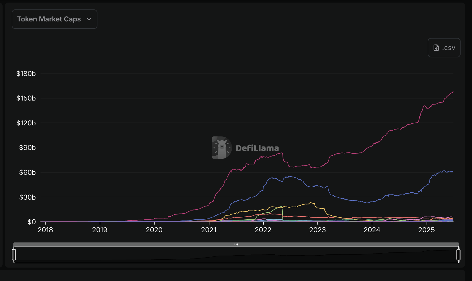 Circle做了一次正确且幸运的押注。2020年,加密货币进入牛市,当年被称为DeFi Summer( 去中心化金融热潮 ),去中心化金融因流动性挖矿等积极因素实现爆发式增长。那一年,USDC市值从4亿美元飙升至将近40亿美元,USDT市值也从40亿美元上涨至200亿美元。