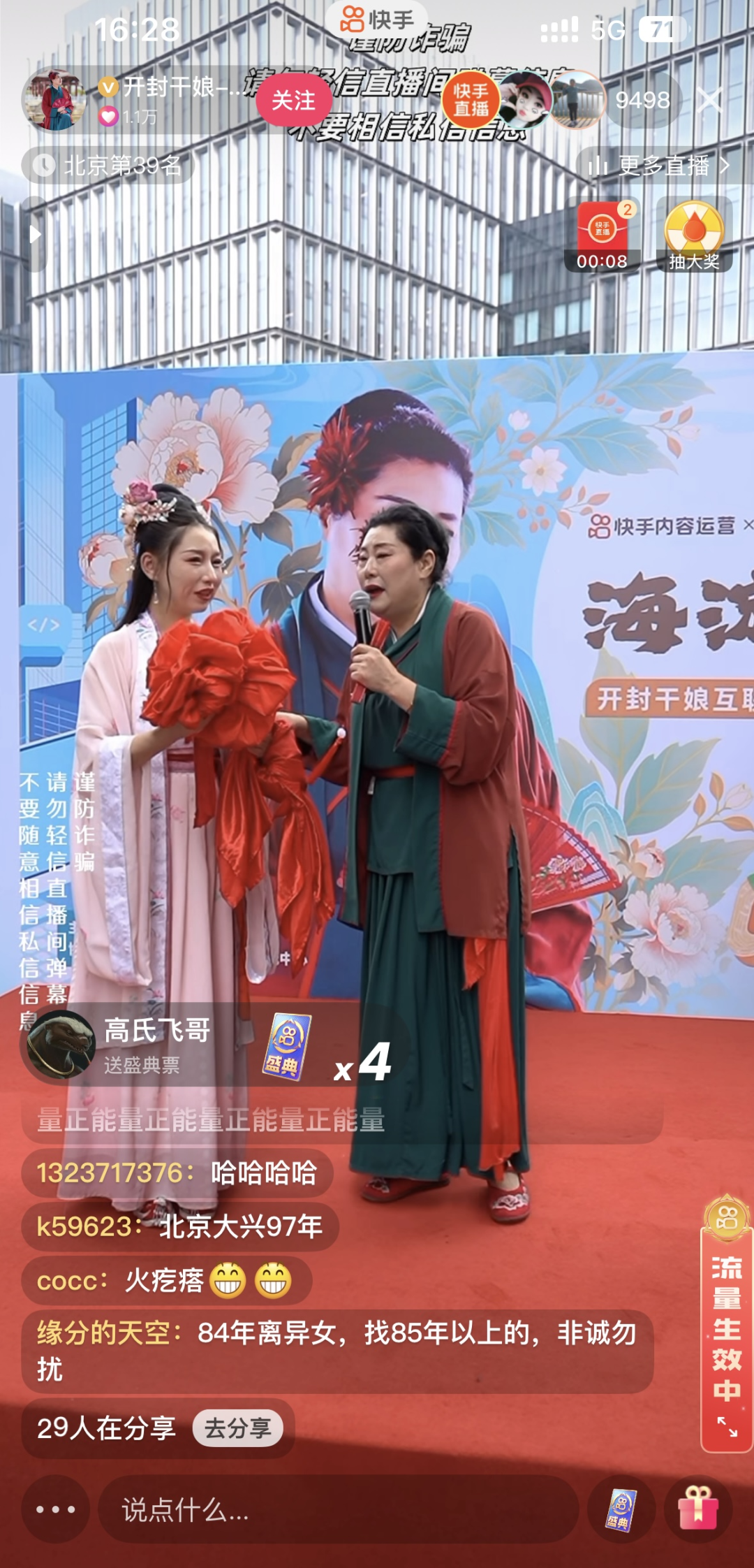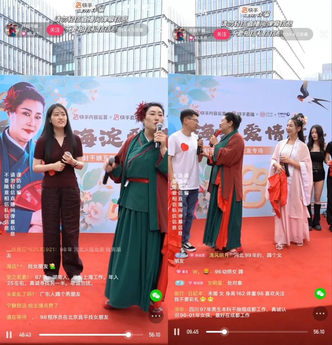 6月28日,快手官方邀请开封王婆(快手账号@开封干娘-赵梅)来西二旗,为互联网大厂人当月老,上演了一场“海淀爱情故事”。