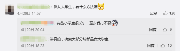 4月18日,搞笑视频播主李青铜三在微博发布标题为“送给所有王者荣耀女大学生”的短视频。在视频中,年轻的男播主用极为夸张的方式,将“女大学生”描述为水平低、愚蠢、不听劝和爱喷人的形象。视频被转到各大视频网站,激起了一阵共鸣。也有女玩家回帖反驳:“厉害的女大学生很多好吧!”
