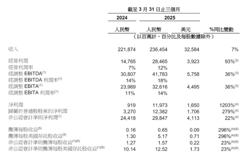 图:阿里巴巴2025年第一季度报告