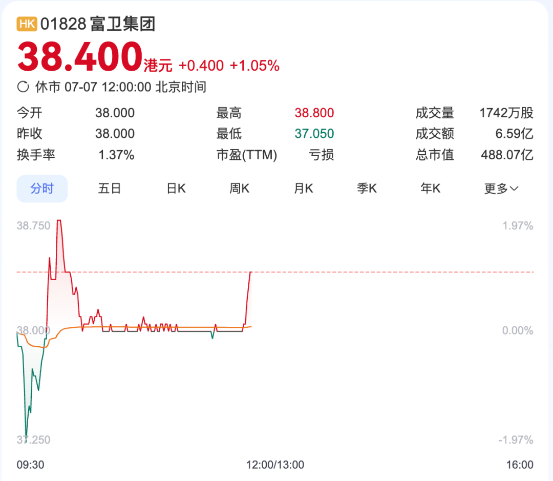 7月7日,富卫集团登录港交所,每股定价38港元,开盘平开,总市值482.98亿港元。截至午间休盘,每股涨1.05%至38.4港元,总市值488.07亿。