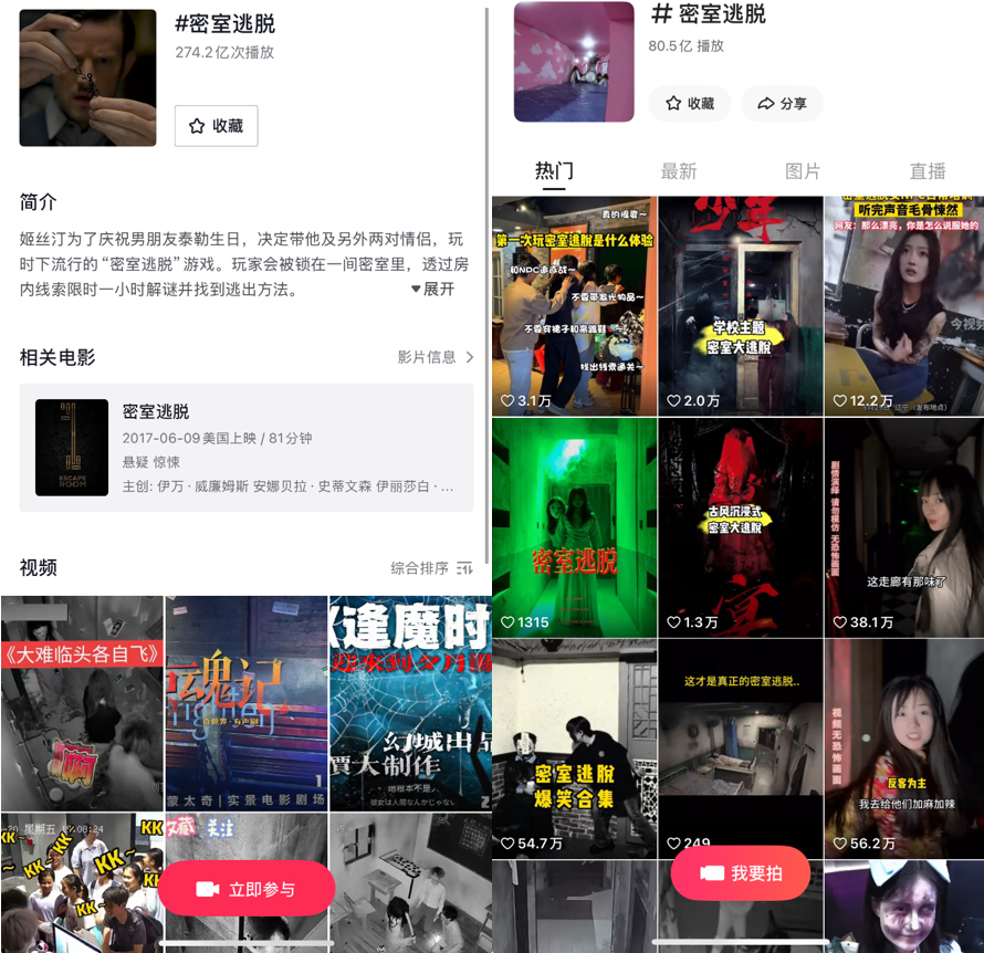 实体密室场景的沉浸感和互动性扩大了相关视频在网络上的声量。