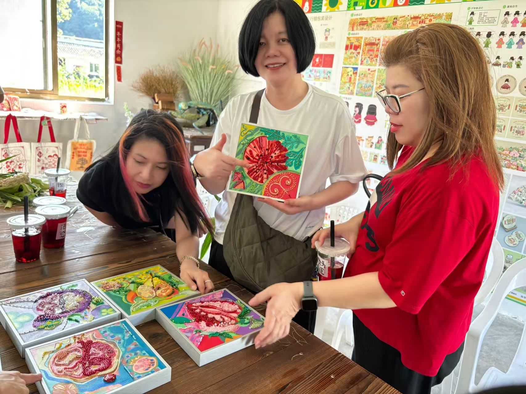 参访团在洋山村农指员张宁的带领下,实地考察了学校与东钱湖镇地方乡村合作的多个项目,包括乡村艺术赋能项目、校村共富基地、乡村美育中心以及特色农产品研发中心等。泰国诗纳卡琳威洛大学社会传播创新学院院长波拉万·帕塔亚农助理教授博士(Assistant Professor Dr. Porawan Pattayanon)表示:“中国高校在乡村振兴中的角色令人印象深刻。宁波财经学院不仅提供技术支持,还通过师生参与带动乡村经济,这种模式对泰国乡村发展具有重要参考价值。”