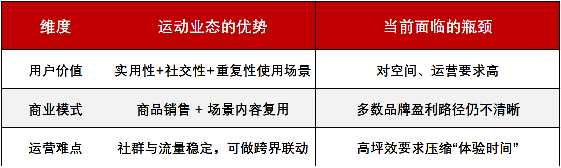 在缺乏综合匹配的条件下,户外运动品牌的“社交属性”就会被削弱,门店沦为“高造价陈列区”,难以带动商场整体活力。运动业态的热并非幻觉,但它的“火”正在经历从广义热度向精细运营能力的重估。它不是不行,而是“不再无脑适配”。购物中心不能只看“社媒爆红”或“品牌招商热”,更应看其在地性、运营强度与品类进化逻辑。