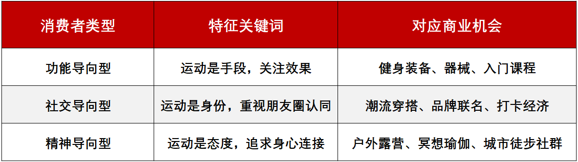 根据RET睿意德的研究,中国消费者的运动行为可分为三类: