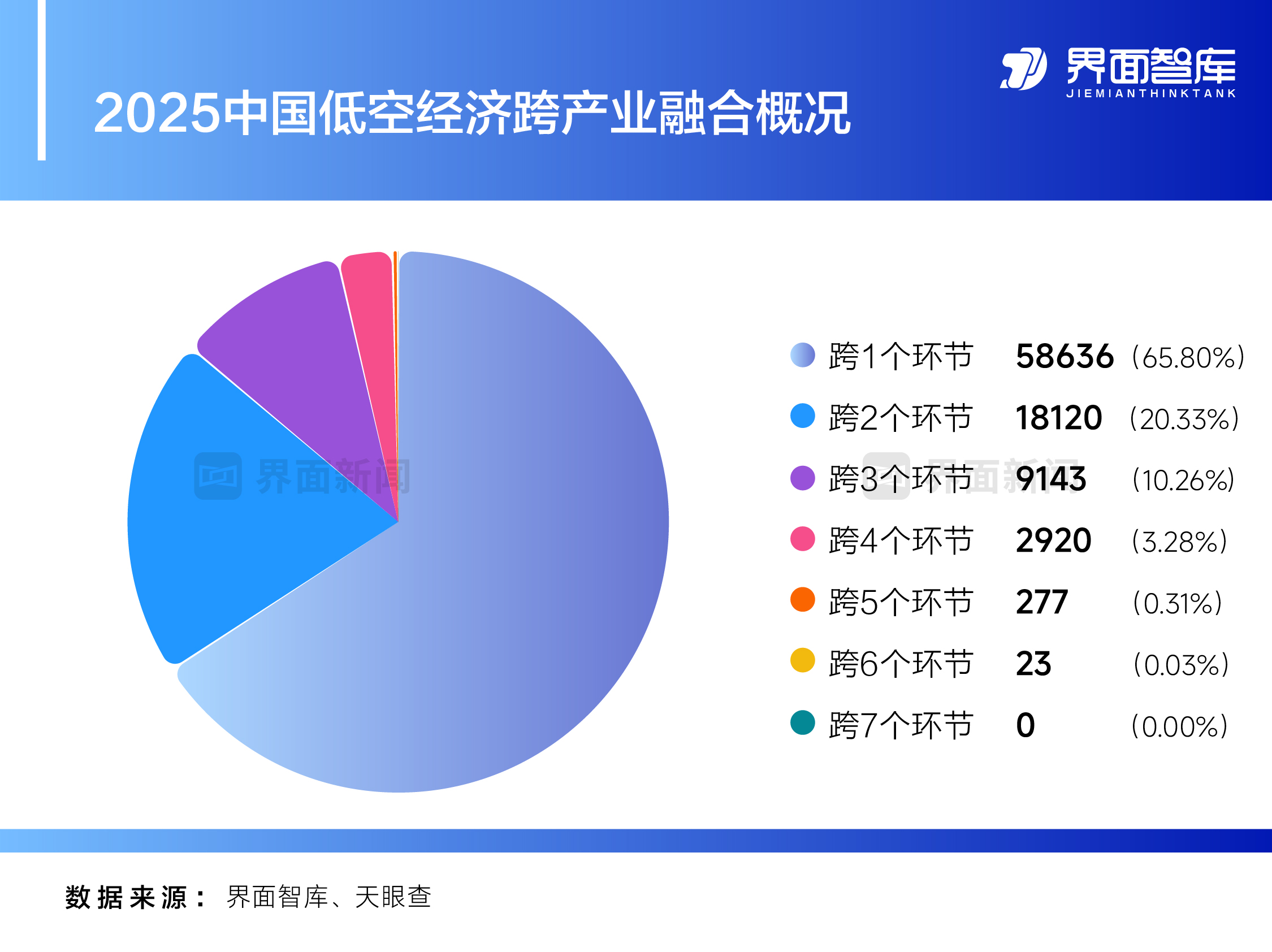 在基础数据获取上,界面智库通过与天眼查合作,构建了涵盖产业链企业初筛、多维数据清洗及精准特征匹配的三级数据挖掘体系,锁定了在中国大陆地区登记注册的89119 家低空经济企业(数据提取时间为2025年3月15日)。低空经济产业融合度计算基于此样本数据库。