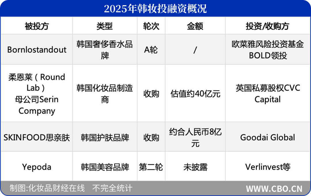 据CBO不完全统计,今年以来韩国美容品牌已获得四次国际资本下注。而巨头们对于韩国品牌的投资布局,更看重其创新研发能力以及海外拓展潜力。