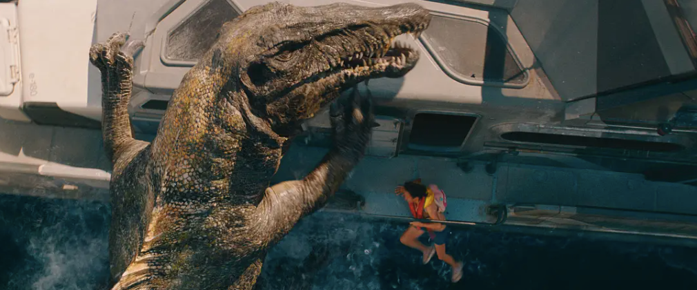 作为对比,即便是口碑不佳的《侏罗纪世界2、3》里,前者有火山爆发时万龙齐奔的复杂场景,暴虐迅猛龙的恐怖室内追逐;后者有丛林遭遇镰刀龙的窒息场景和以及霸王龙、南方巨兽龙的大战,都足以令观众印象深刻,走出影院后仍然回味。而《重生》中加入的畸王龙与其说是恐龙,反而是更像异形,畸形丑陋毫无美感。