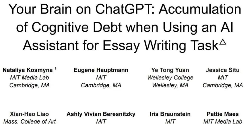 最近,MIT一份关于“使用ChatGPT是导致认知债务累积”的研究报告引发了不小的争议。