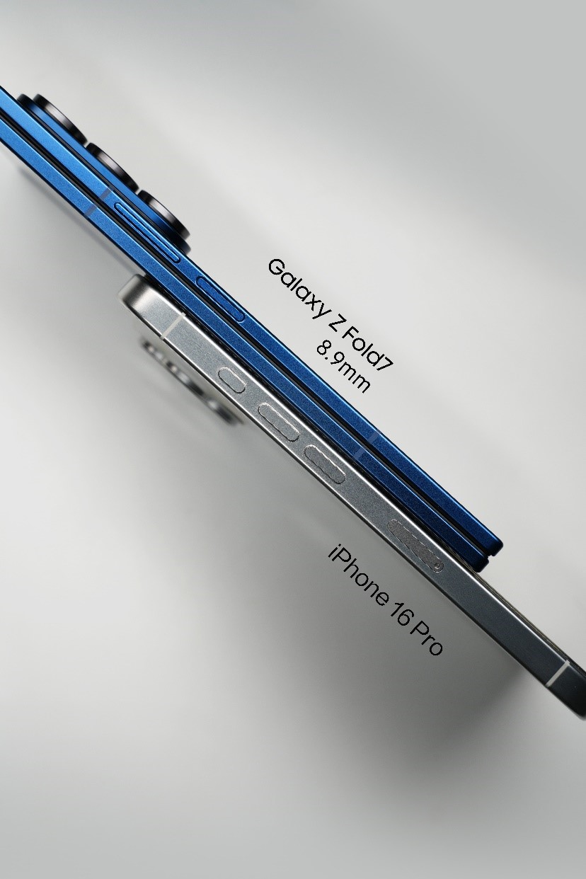 三星Galaxy Z Fold7重量仅为215克,比三星直板旗舰Galaxy S25 Ultra更轻。折叠状态下厚度仅为8.9毫米,是目前市面上最轻的折叠旗舰之一。作为对比,iPhone 16 Pro Max的厚度为8.25mm。对折叠屏的目标受众而言,曾经最困扰的厚和重痛点已经基本解决。