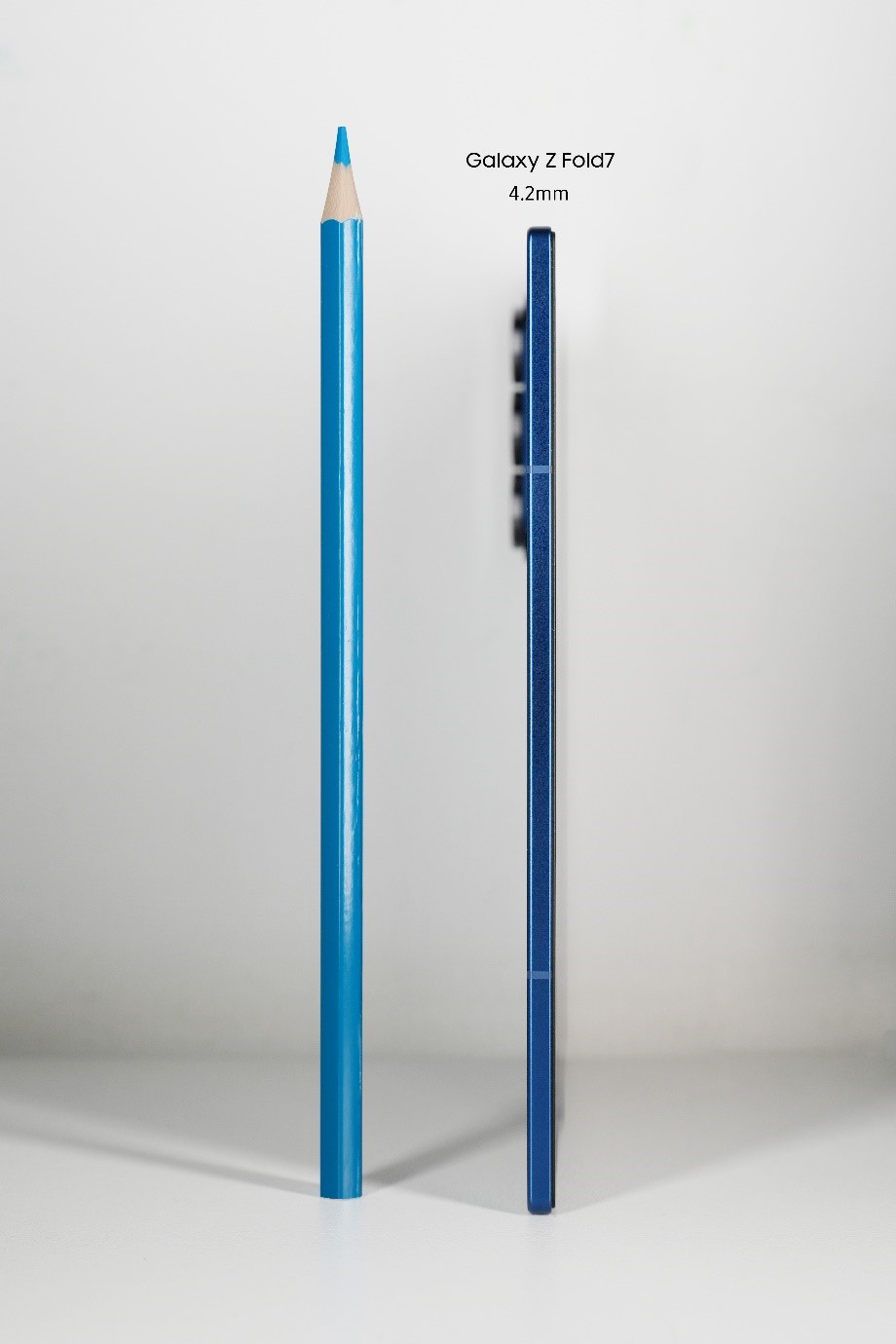 轻薄程度提升得益于三星独特的硬件创新能力。例如,全新超薄精工装甲铰链凭借升级的水滴形设计与多轨结构,不仅提升了轻薄度,也带来了均匀分散应力的效果,从而明显淡化了折痕。并且,轻薄并未影响三星Galaxy Z Fold7的耐用性,其外屏盖板、主屏幕和边框都变得更加坚硬、耐摔。