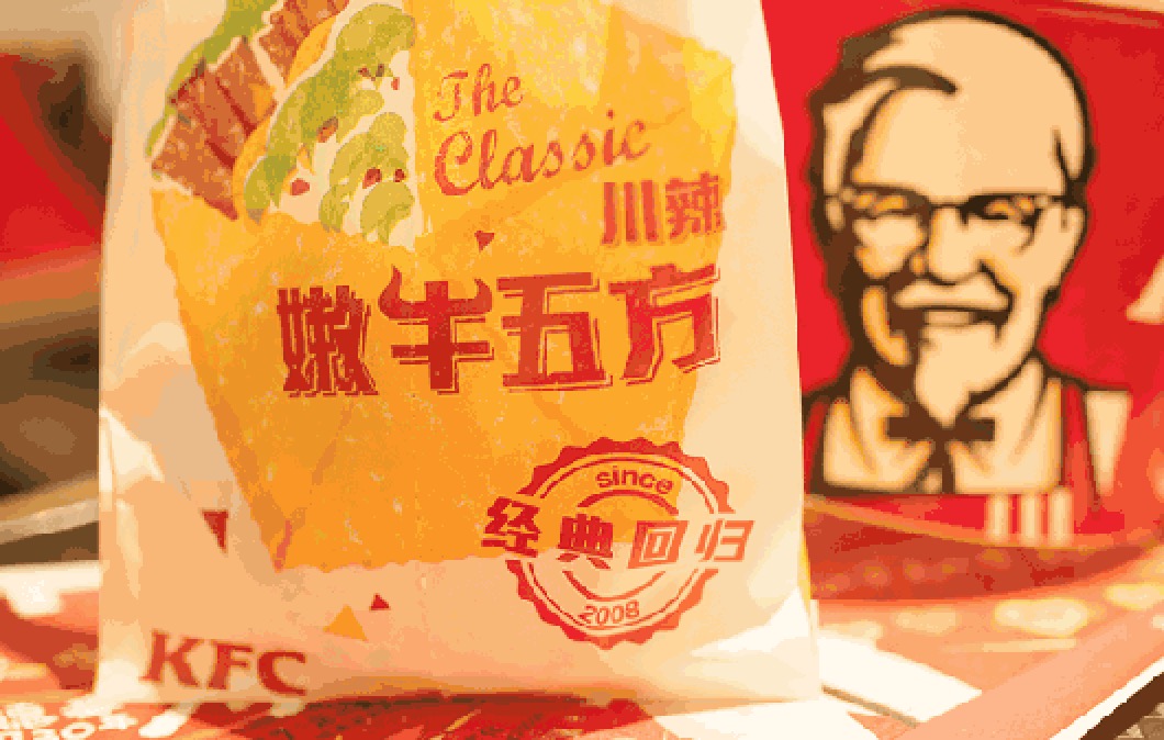 如果要让“回归”值得期待,那么一定是一款万众期待的产品。川辣嫩牛五方在2008年上市,当时正是肯德基大力进行本土化的时候,甚至还推出了“为中国而改变” 的口号。辣味是西式快餐所没有的口味,所以这一产品是肯德基本土化的一个经典尝试,但“服役”了4年之后,嫩牛五方也在2012年正式下架。