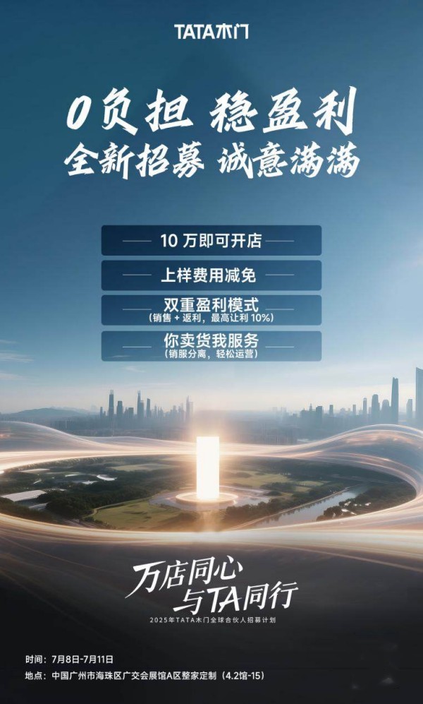 当下家居行业招商可谓困境重重,诸多品牌在招商道路上举步维艰。不少品牌缺乏成熟的运营体系,让加盟商独自摸索,导致经营效率低下;招商模式单一,无法满足不同投资者的需求;加盟后支持不足,加盟商只能孤军奋战,盈利艰难。然而,TATA木门敏锐洞察市场痛点,在本次建博会上推出一系列极具创新性与吸引力的招商政策,致力于为经销商打造低风险、高回报的投资平台。
