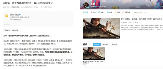 「有人欢喜有人忧」,同一个公司的两款产品有着完全不同的命运。从《万民长歌:三国》目前的demo来看,游戏有亮点也有缺陷,热度相对一般。但这是首款推出demo的大厂单机游戏,在推出试玩后不久就被砍实在可惜。不过也在意料之中,丁磊在网易2024年财报Q4财报电话会议中表示:如果发现有些项目在未来推出时,不适合市场用户的需求,那么我们会积极果断地「踩刹车」。