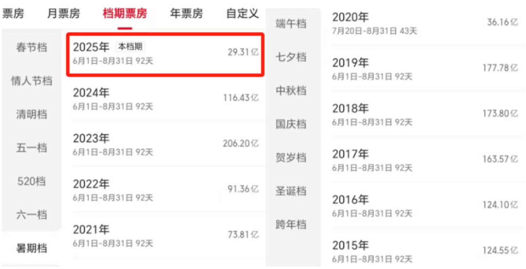 步入7月中旬,暑期档即将过半,但档期票房只有29亿出头。