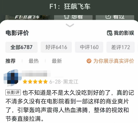 从“法拉利老了依旧是法拉利”,到“布拉特·皮特跟汤姆·克鲁斯雄竞”,再到抖音网友的一句“真的记不清多久没有在电影院看到一部这样的商业爽片了”,都让“高口碑就该高票房”成为了现实。