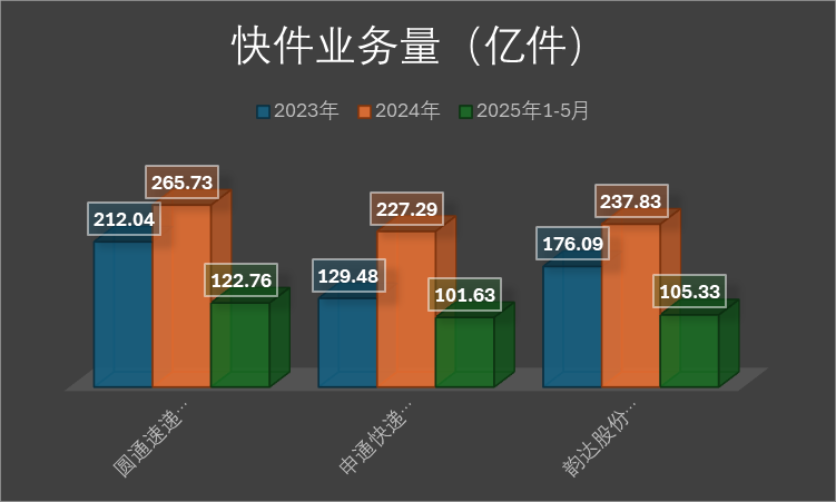 年度对比看,2024年同比降幅最大的是韵达股份,下降幅度达12.29%,因其直客比例下降和局部市场竞争加剧。2025年前五个月虽降幅收窄,但数据仍低于2024年均值,反映淡季竞争压力未减。