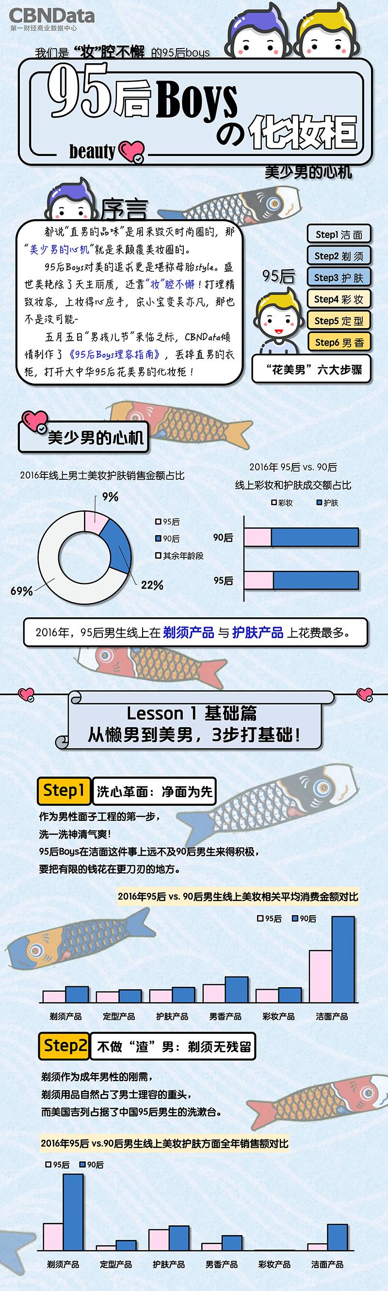 在五月五日“男孩儿节”来临之际,第一财经商业数据中心(CBNData)倾情制作了《95后Boys的理容指南》,丢掉直男的衣柜,打开大中华95后花美男的化妆柜!