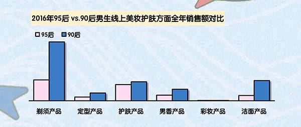 5月5日男孩儿节来临之际,第一财经商业数据中心(CBNData)发布了《95后Boys理容消费微报告》(以下简称为《报告》)。CBNData《报告》基于阿里巴巴大数据,通过洞察2016年95后男性群体在洁面、剃须、护肤、彩妆、定型和男香六大品类的消费情况,还原美妆消费特征。