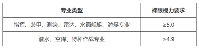 需要注意的是,部分军校的指挥类专业对视力要求更严格,具体如下: