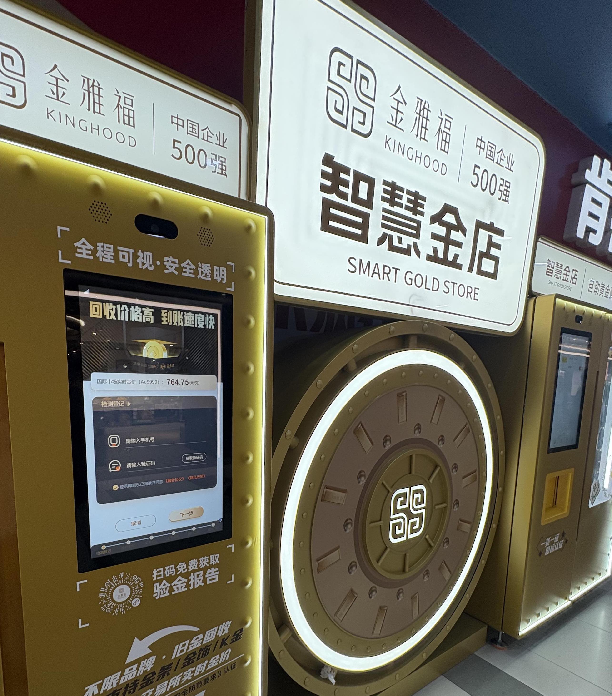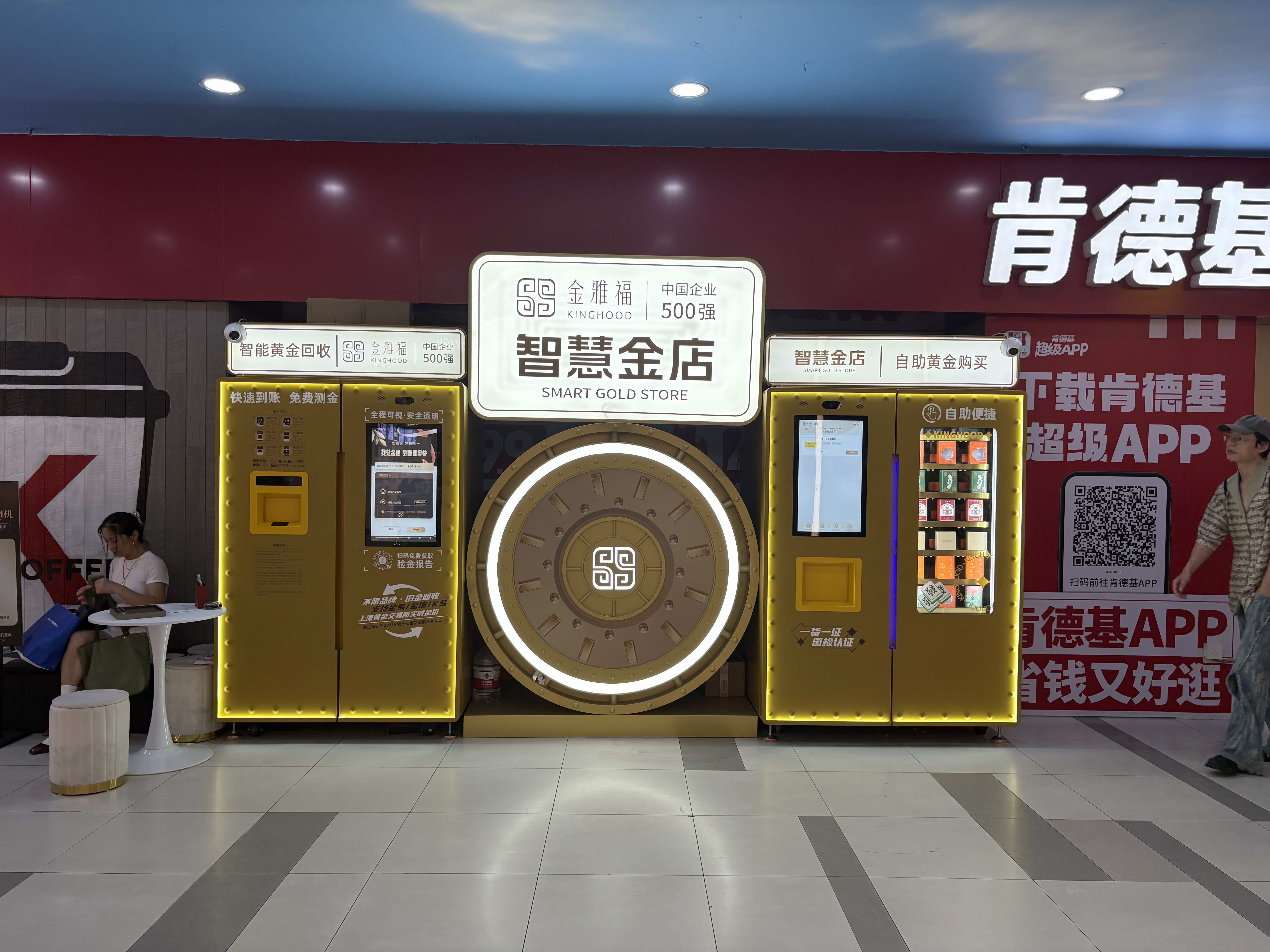 金雅福方面称,其在2023年开始向市场投放“智慧金店”自助终端机器。该机器为金雅福集团下属子公司自主研发。除了上述龙之梦购物中心,上海环球港商场也已开设有金雅福“智慧金店”。