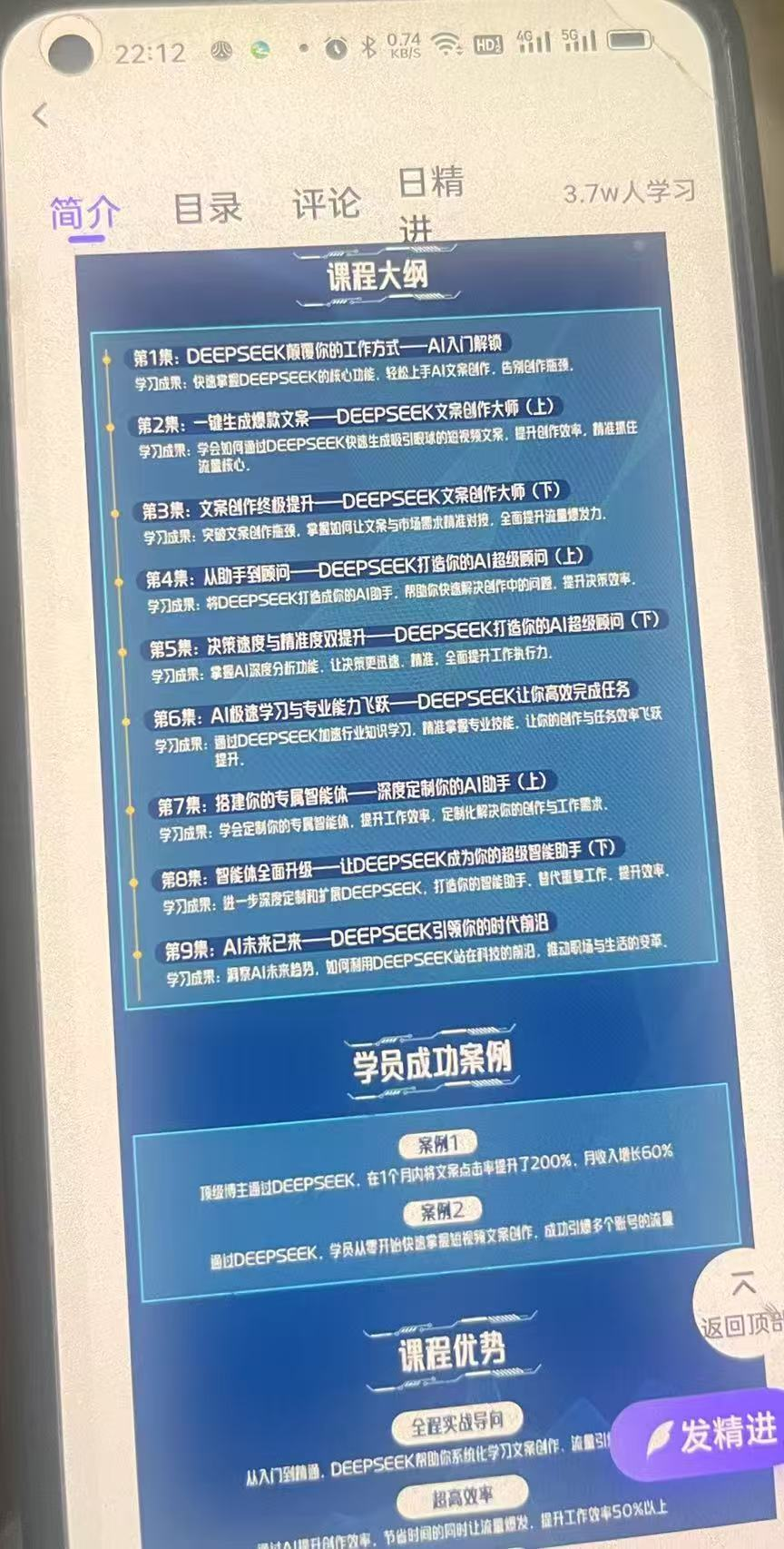 这种氛围感染了黄丽花。不过,很快她就被告知,1元钱的线上课,仅仅是点到为止,想要真正掌握靠AI赚钱的技巧,还需要购买更高阶的课程。