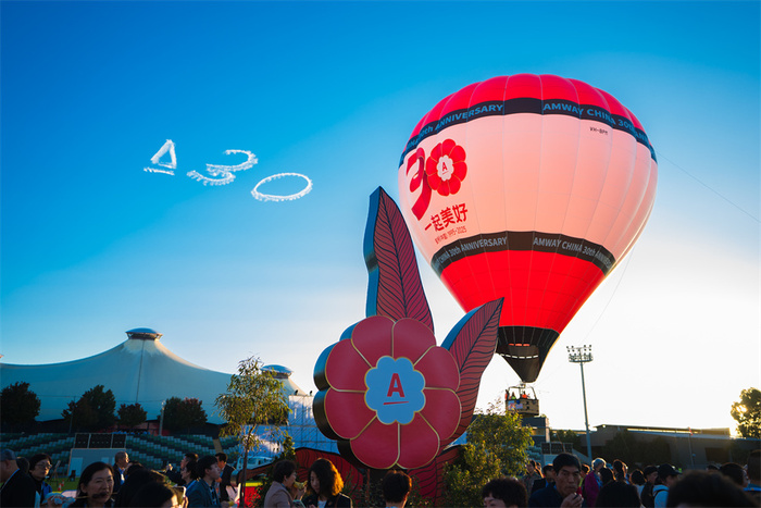 除了文化共创之外,专属定制还体现在团队旅程的每一个细节中。从为安利团队特别设计的机场互动视频,到三十周年主题晚宴上的高光时刻——一只为品牌量身打造的热气球在夜空中缓缓升起,鲜艳醒目的外观跃然天际,成为墨尔本上空最亮眼的风景,也为整个旅程增添了温情且难忘的纪念时刻。