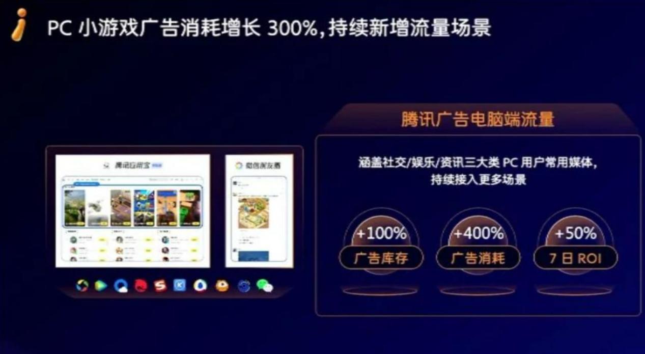 现在包括腾讯在内的平台方已经在通过小游戏跨端、应用宝跨端等平台化的形式,规范化布局PC广告市场,试图如法炮制移动端广告市场的打法。