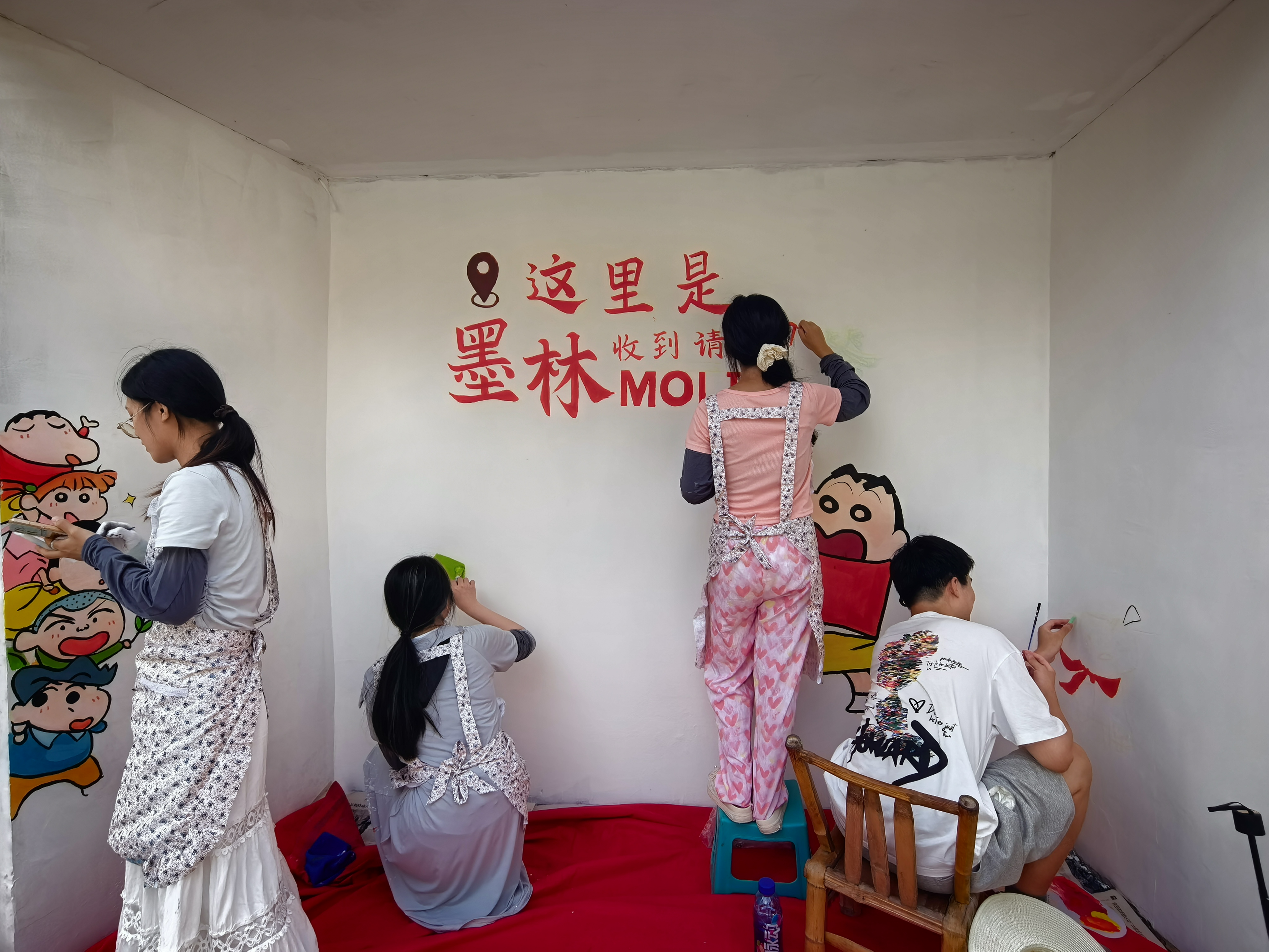 “本以为大学生就是来拍拍照、走个过场。” 墨林村书记郑浩起初的疑虑,道出了不少乡村对短期实践项目的固有印象。但当他看到学生们顶着 38℃高温攀着高梯画墙绘,踩着晨露走村入户做调研,这份疑虑渐渐变成了敬佩。