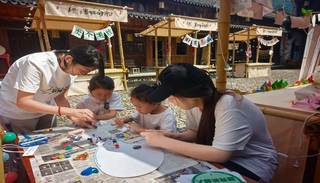 设计专业学生则化身古村“美容师”。他们攀着3米高的梯子,以斑驳墙面为画布,10天完成近100平方米的彩绘。一户老爷爷的小卖部经改造后焕然一新,爷爷看着自家店铺“大变样”,笑得合不拢嘴:“这些学生娃真厉害!画得又快又好,爬那么高的梯子都不怕!”