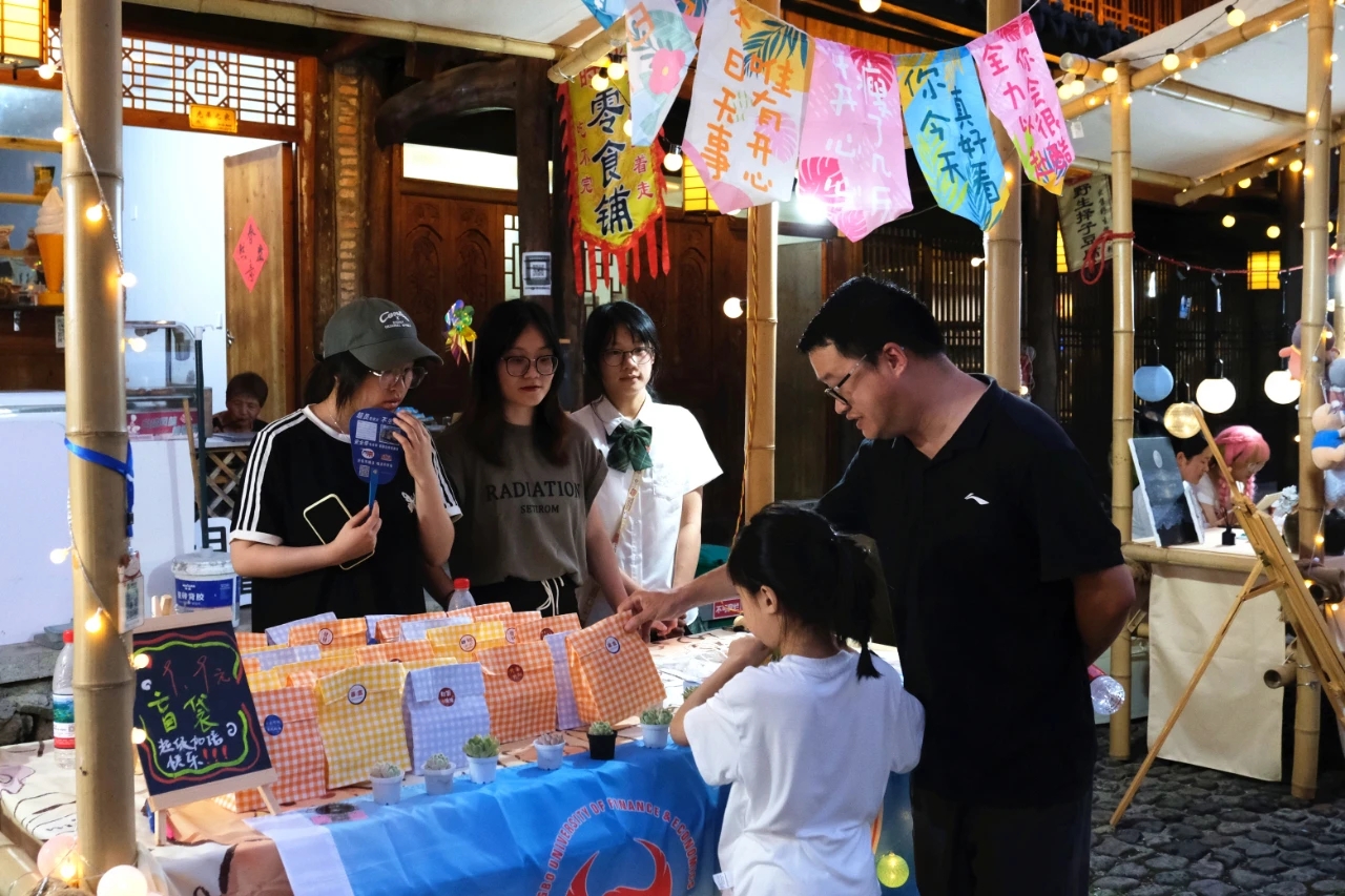 盛夏的墨林古村,突兀的墙面被画笔点染出打卡圣地,寻常集市因“盲袋”摊位注入新的营销点子,乡村音乐会的青春旋律与竹编非遗的传统韵味交相辉映……一场融合社科智慧与青春力量的志愿服务行动在此展开。作为宁波财经学院唯一一组浙江省社科志愿服务项目师生团队依托电子商务、艺术设计、英语等学科专业技能优势,为这座近千年古村注入创新活力,探索出“社科赋能、青春助力”的乡村振兴新路径。