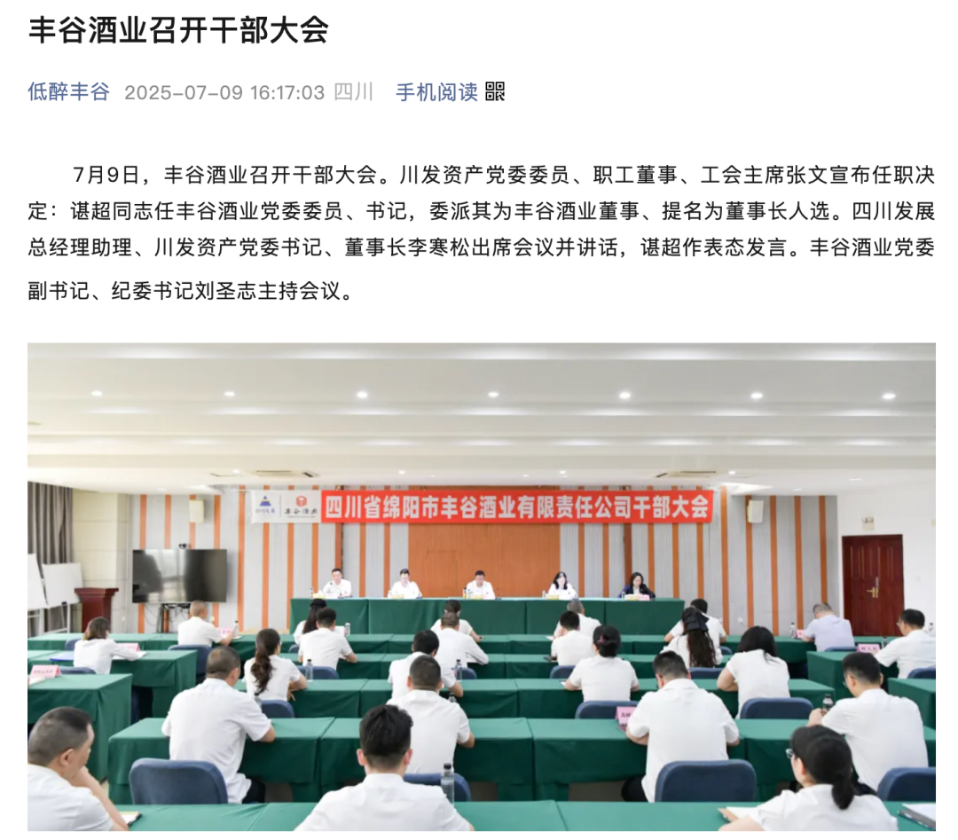 日前,谌超上任丰谷酒业党委委员、书记,并被委派为丰谷酒业董事、提名为董事长人选。