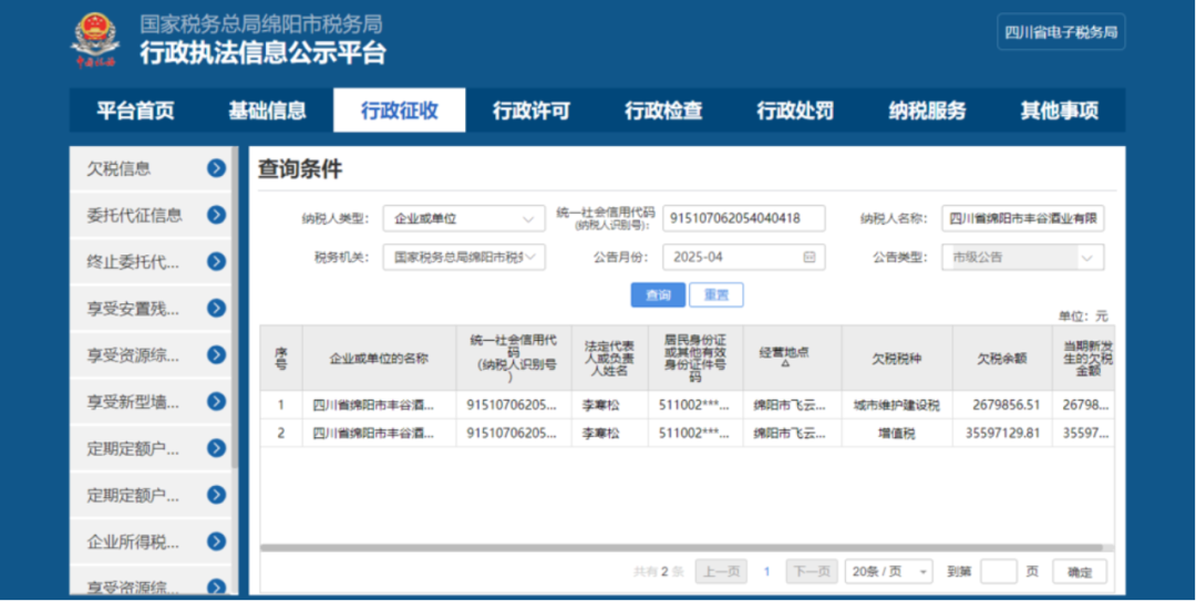 图片来源:国家税务总局行政执法信息公示平台