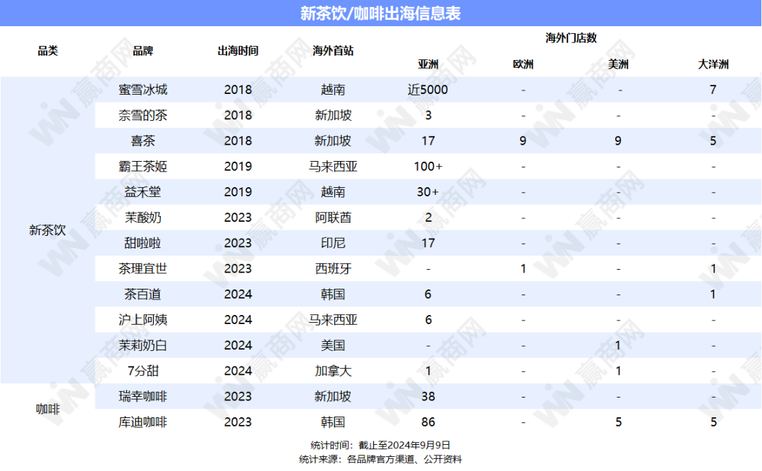 赢商网的数据显示,出海已成为各大新茶饮和咖啡品牌未来发展的重要一环,东南亚地区因地理位置、文化相似性以及巨大的市场潜力,成为品牌出海的首选。同时,品牌们在欧美市场的探索和布局正逐渐加速。