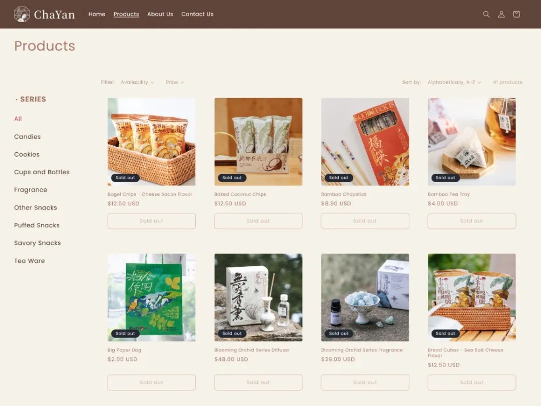与新茶饮同行的海外门店扩张路径不同,茶颜悦色的出海首秀带着鲜明的“轻资产”标签:首批上线了近40款产品,涵盖零食、茶具及文创周边,全部通过跨境电商渠道触达消费者。