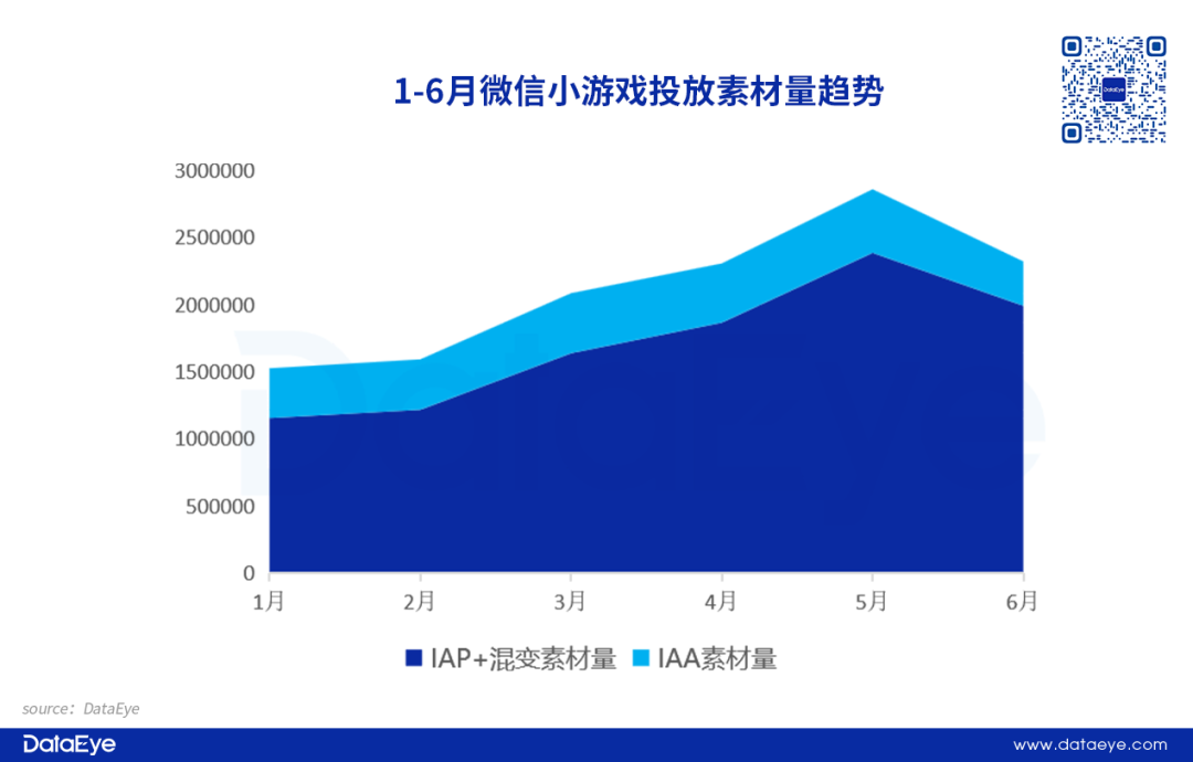 从产品模式来看,消耗榜TOP20中,混合变现小游戏占据15个位置,环比5月增加了1款产品。