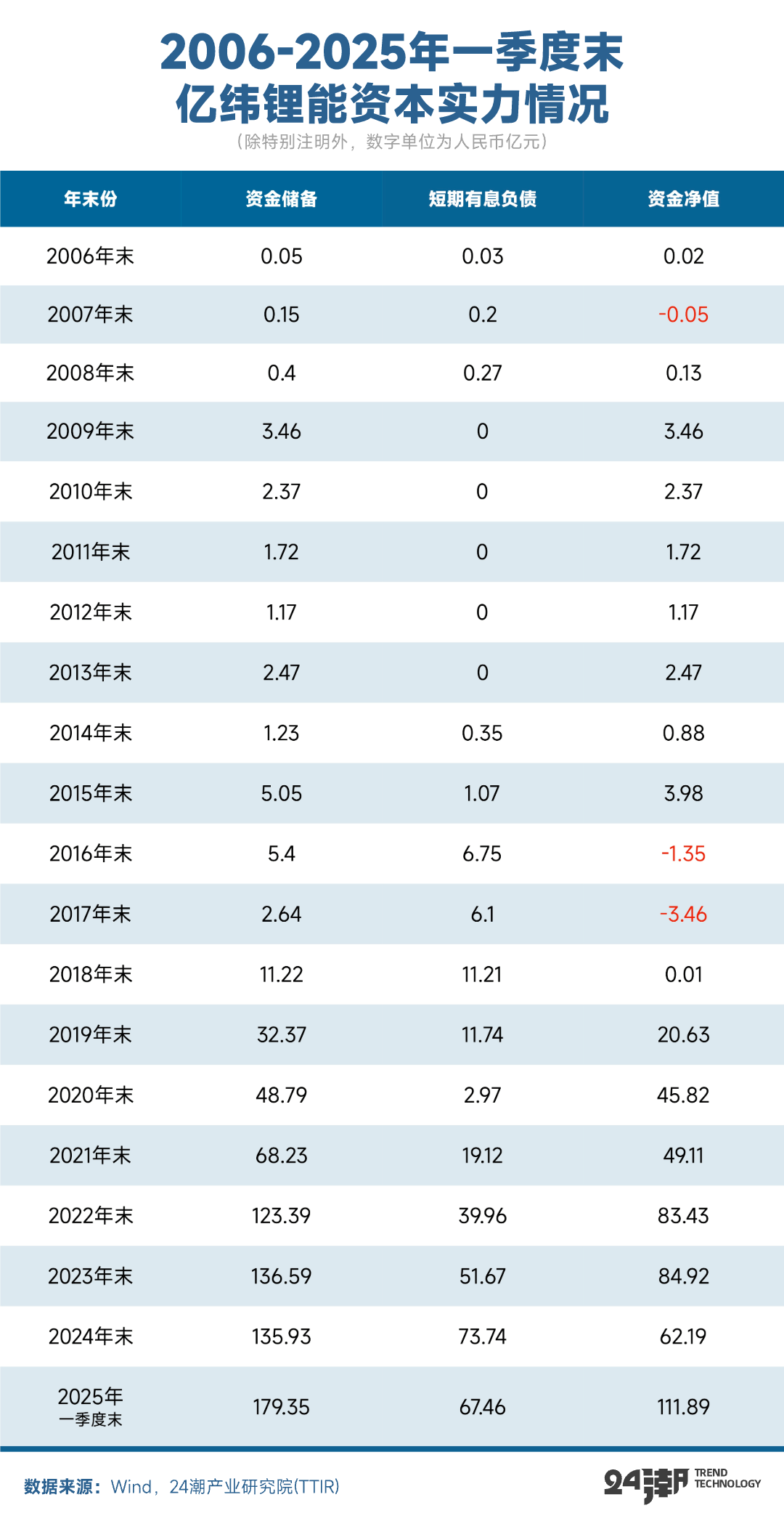 另一方面,笔者分析认为,不断提升的资本实力也在为亿纬锂能持续扩张的商业帝国提供强力支撑。据24潮产业研究院(TTIR)统计,截止25年一季度末亿纬锂能资金储备已增至179.35亿元,剔除短期有息负债后其资金净值达111.89亿元,资本实力位居全行业前列。